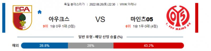 【분데스리가】 8월20일 아우크스부르크 vs 마인츠05