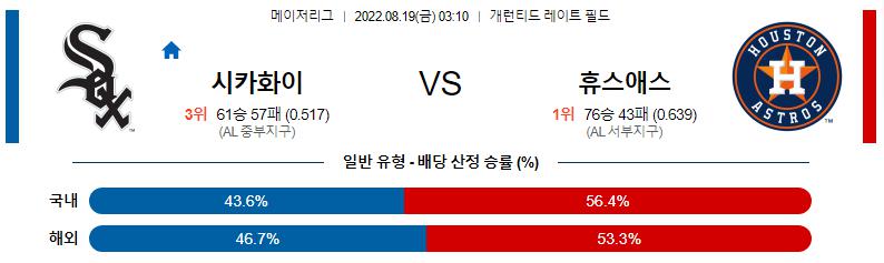 8월 19일 03:10 MLB C.화이트삭스 : 휴스턴 MLB분석