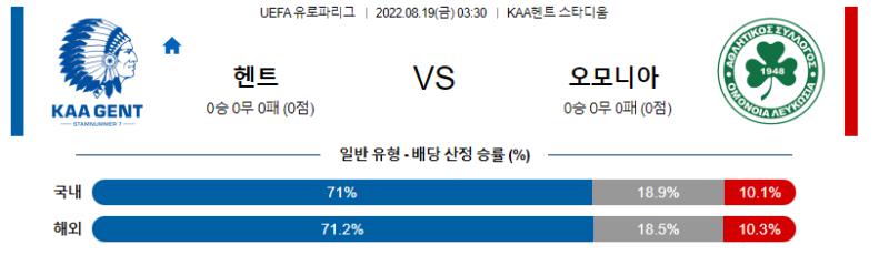 UEFA 유로파리그 8월 19일 03:30 KAA 헨트 : AC 오모니아