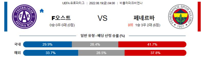 UEFA 유로파리그 8월 19일 04:00 FK 아우스트리아 빈 : 페네르바흐체