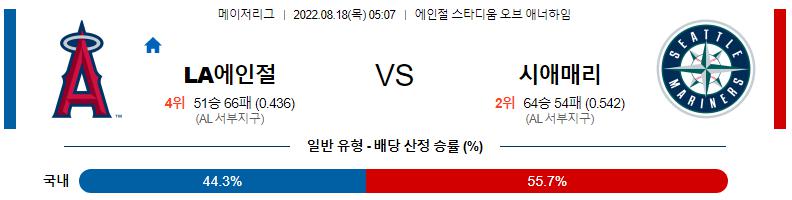 열람중 8월 18일 05:07 MLB LA에인절스 : 시애틀 MLB분석 2022.08.17 255