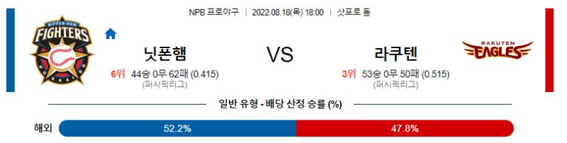 8월 18일 18:00 NPB 니혼햄 : 라쿠텐