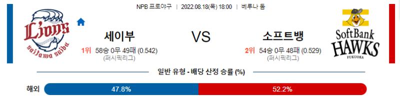 8월 18일 18:00 NPB 세이부 : 소프트뱅크