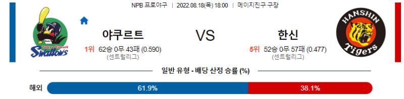 8월 18일 18:00 NPB 야쿠르트 : 한신