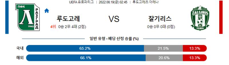 UEFA 유로파리그 8월 19일 02:45 루도고레츠 라즈그라드 : 잘기리스