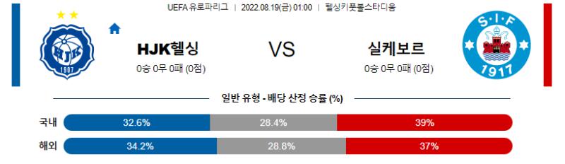 UEFA 유로파리그 8월 19일 00:59 HJK 헬싱키 : 실케보르 IF