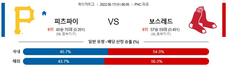 8월 17일 08:05 MLB 피츠버그 : 보스턴 MLB분석
