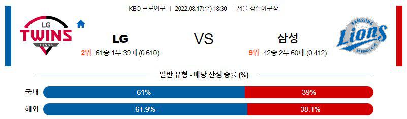 【KBO】 8월17일 LG vs 삼성