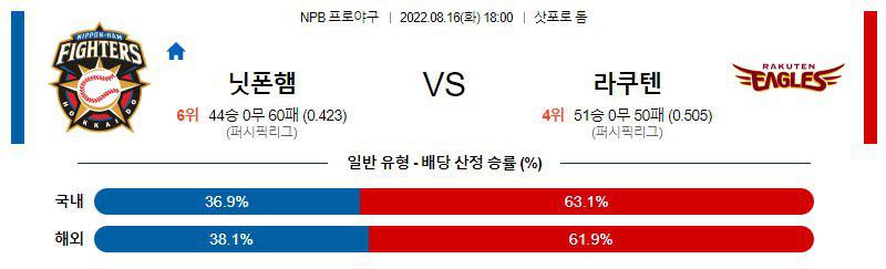【NPB】 8월16일 니혼햄 vs 라쿠텐