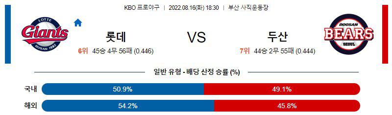 한국프로야구 롯데 자이언츠 두산 베어스의 경기가 오는 화요일(8/16) 롯데의 홈 구장인 부산 사직야구장에서 열릴 예정입니다. 롯데 자이언츠 두산 베어스 양 팀 간의 이번 주초 2연전 가운데 첫번째로 펼쳐지는 경기인데요 양 팀의 이번시즌 맞대결에서는 두산이 6승4패로 우위를 보이고 있습니다.