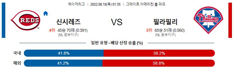 8월 18일 01:35 MLB 신시내티 : 필라델피아 MLB분석