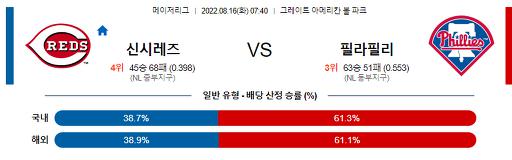 8월 16일 07:40 MLB 신시내티 : 필라델피아