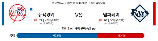 8월 16일 08:05 MLB 뉴욕 양키스 : 탬파베이