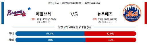 열람중 8월 16일 08:20 MLB 애틀랜타 : 뉴욕 메츠 2022.08.16 220