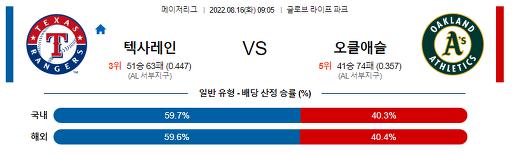 8월 16일 09:05 MLB 텍사스 : 오클랜드
