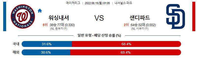 【MLB】 8월 15일 워싱턴 vs 샌디에이고
