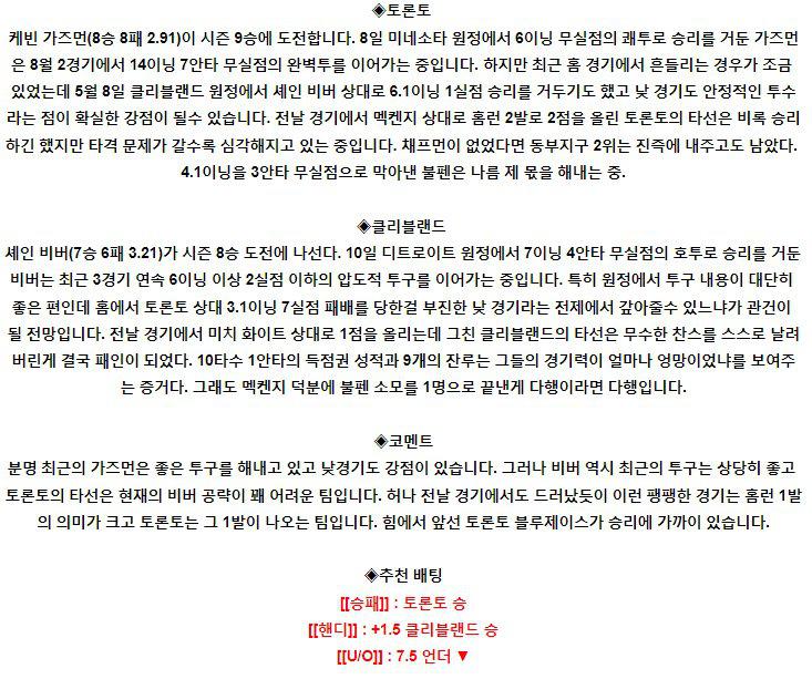 ◈토론토 기쿠치는 워낙 안정감이 떨어지기에 도대체 토론토가 그를 왜 장기계약으로 잡았는지에 대한 비난이 나오고 있습니다. 시애틀에서도 그리 인상적인 선발 자원이 아니었던 투수였는데 디비전을 바꿔서도 팀이 원하는 성적을 내지 못하고 있습니다. 후반기 등판에서는 평균 5이닝도 소화하지 못했고 이전 등판에서는 홈런을 3개나 맞기도 했다. 볼티 상대로도 …