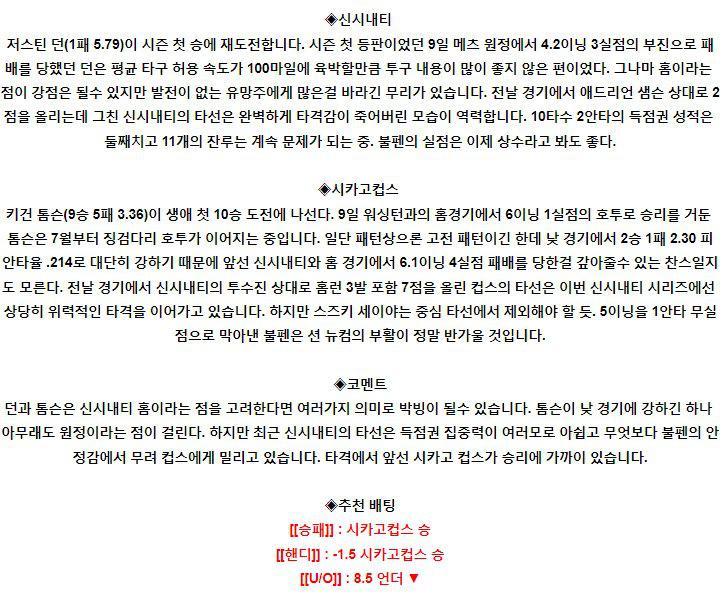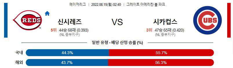 【MLB】 8월 15일 신시내티 vs 시카고컵스
