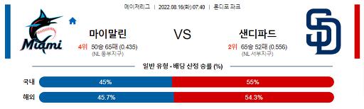 8월 16일 07:40 MLB 마이애미 : 샌디에이고