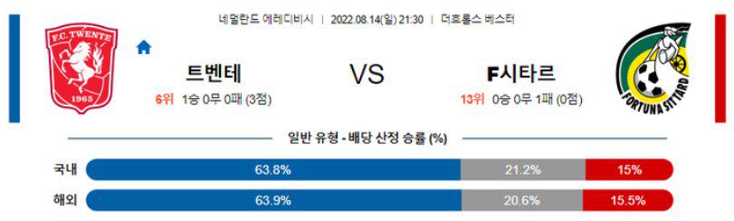 【Eredevisie】 8월14일 트벤테 vs 포르투나시타르트