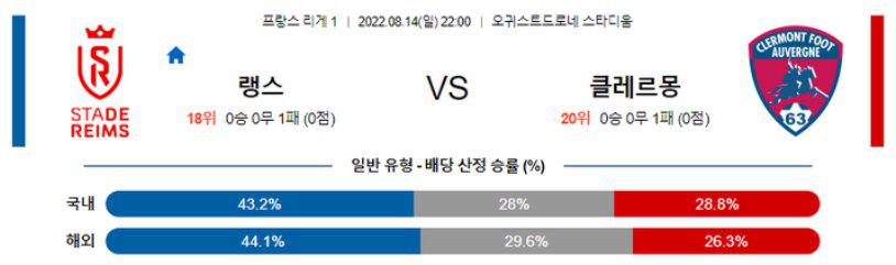 【리그앙】 8월14일 스타드랭스 vs 끌레르몽
