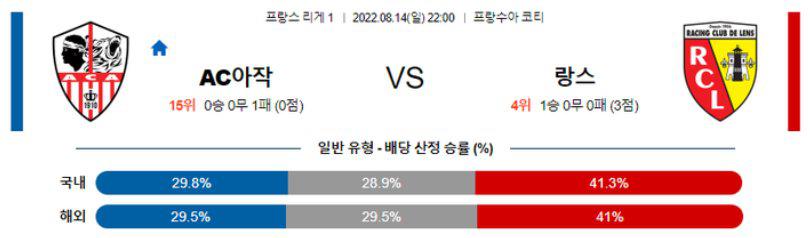 【리그앙】 8월14일 AC아작시오 vs RC랑스