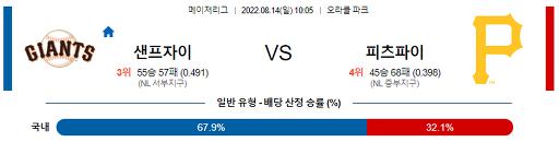 8월 14일 10:05 MLB 샌프란시스코 : 피츠버그