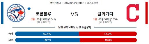 8월 14일 04:07 MLB 토론토 : 클리블랜드