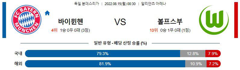 【분데스리가】 8월15일 바이에른뮌헨 vs 볼프스부르크