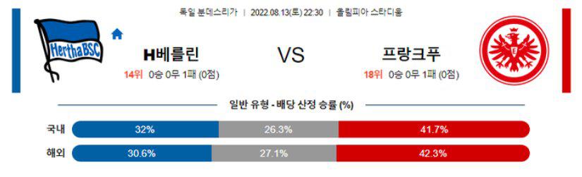 【분데스리가】 8월13일 헤르타베를린 vs 프랑크푸르트
