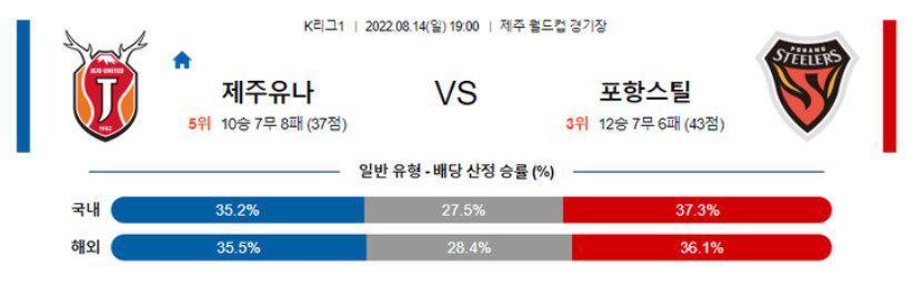 【K리그1】 8월14일 제주유나이티드 vs 포항스틸러스