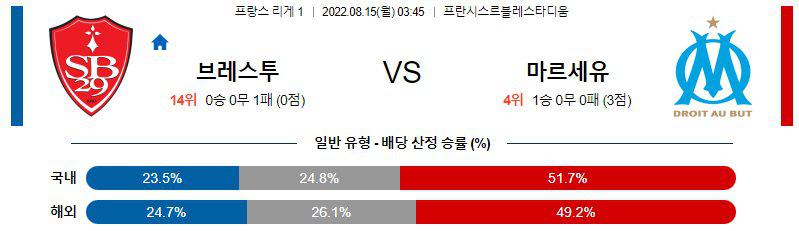 【리그앙】 8월15일 스타드브레스트 vs 올림피크마르세유