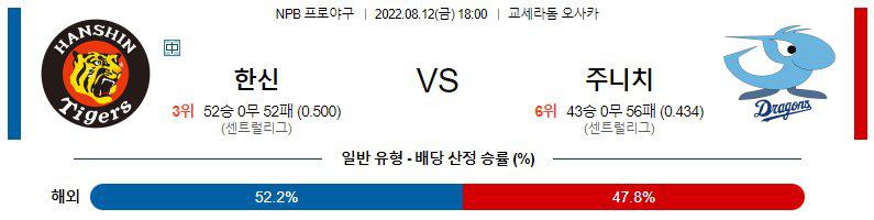 일본프로야구 센트럴리그 한신 타이거스 주니치 드래건스의 경기가 오는 금요일(8/12) 18:00 한신의 홈 구장인 교세라 돔 오사카에서 열릴 예정입니다. 한신 타이거스 주니치 드래건스 양 팀 간의 이번 주말 3연전 가운데 첫번째로 펼쳐지는 경기입니다.
