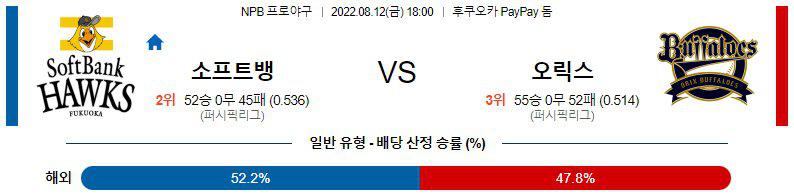 【NPB】 8월12일 소프트뱅크 vs 오릭스