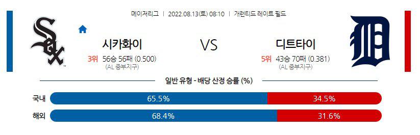 【MLB】 8월 13일 화이트삭스 vs 디트로이트