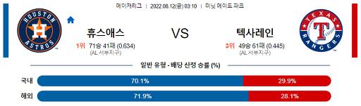 8월 12일 03:10 MLB 휴스턴 : 텍사스