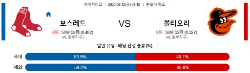 8월 12일 08:10 MLB 보스턴 : 볼티모어