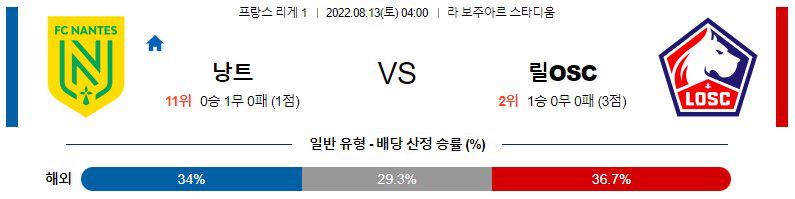 【리그앙】 8월13일 낭트 vs 릴OSC