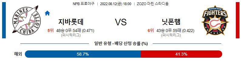 열람중 【NPB】 8월12일 지바롯데 vs 니혼햄 2022.08.12 195
