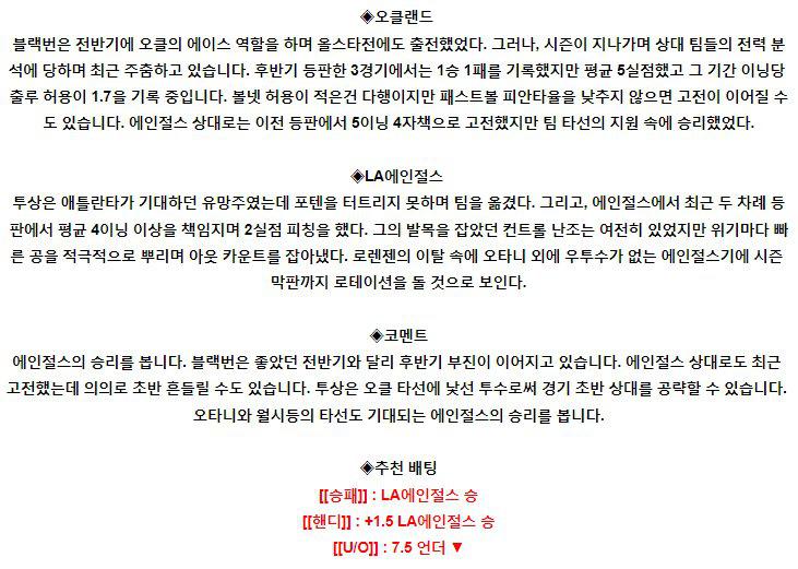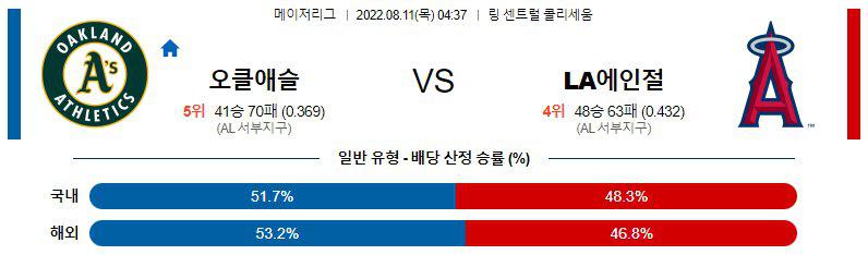 【MLB】 8월 11일 오클랜드 vs LA에인절스