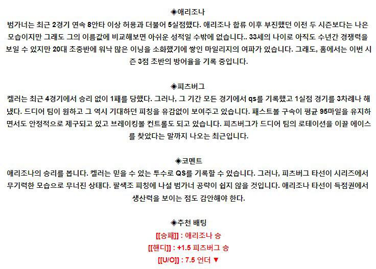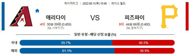 【MLB】 8월 11일 애리조나 vs 피츠버그
