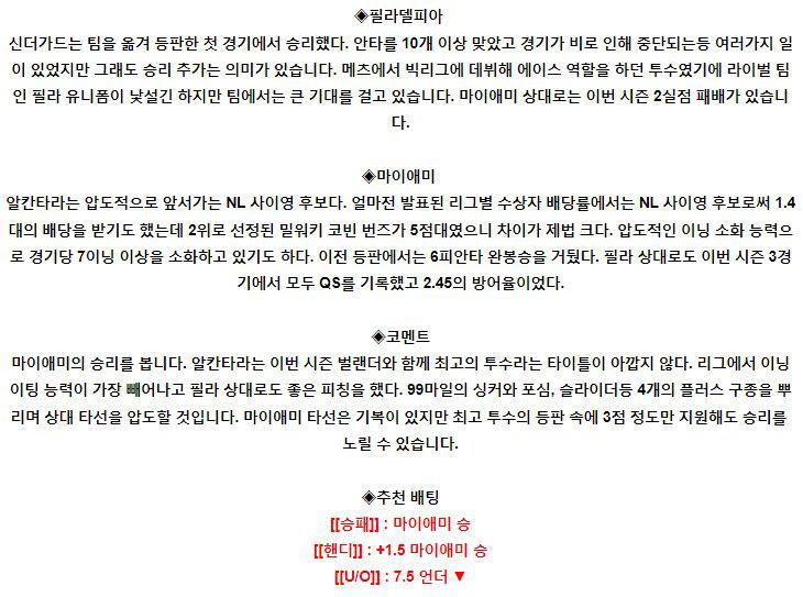◈샌디에이고 조 머스그로브(8승 5패 3.00)가 시즌 9승 도전에 나섭니다. 5일 콜로라도와의 홈경기에서 4.2이닝 6실점의 부진으로 패배를 당했던 머스그로브는 7월부터 투구 내용이 크게 흔들리고 있는 중입니다. 그나마의 특징이라면 당하는 팀에게 당하고 강한 팀에게 강하다는 점인데 금년 머스그로브는 샌프란시스코 상대로 무려 14이닝 5안타 무실점의 투구…