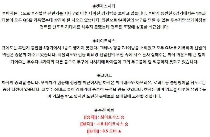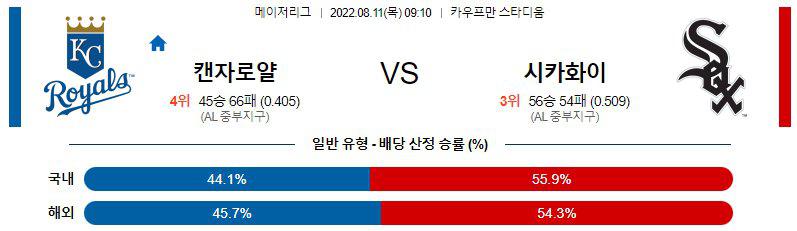 【MLB】 8월 11일 캔자스시티 vs 시카고화이트