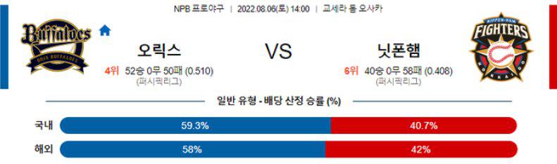 [NPB] 8월6일 오릭스 vs 니혼햄