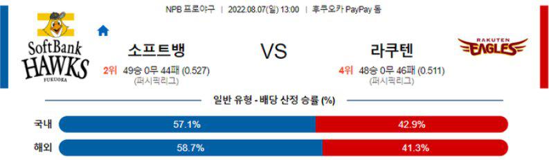 [NPB] 8월7일 소프트뱅크 vs 라쿠텐