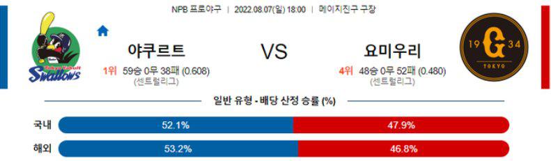 [NPB] 8월7일 야쿠르트 vs 요미우리