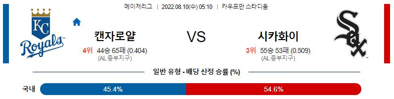 8월 10일 05:10 MLB 캔자스시티 : 화이트삭스 MLB분석