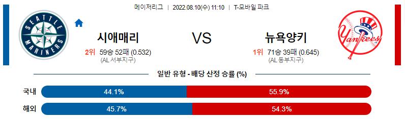 8월 10일 11:10 MLB 시애틀 : 뉴욕양키스 MLB분석