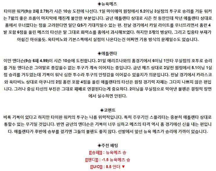 【MLB】 8월 6일 뉴욕메츠 vs 애틀란타