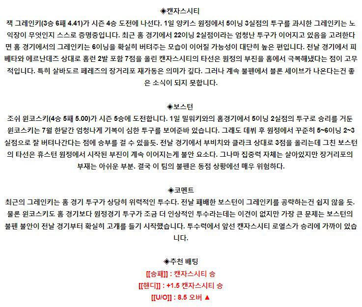 【MLB】 8월 6일 캔자스시티 vs 보스턴